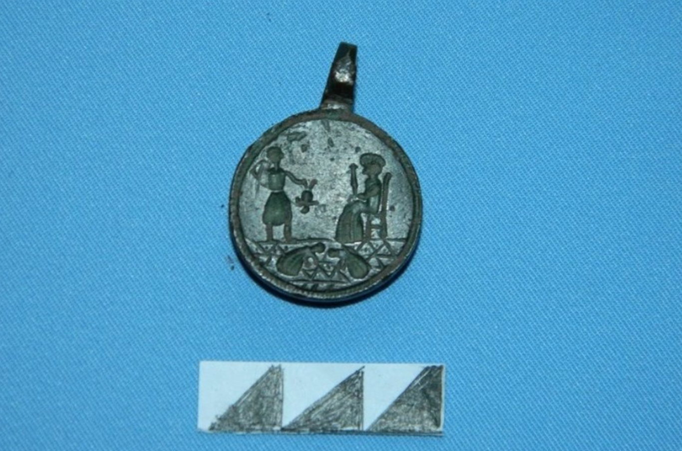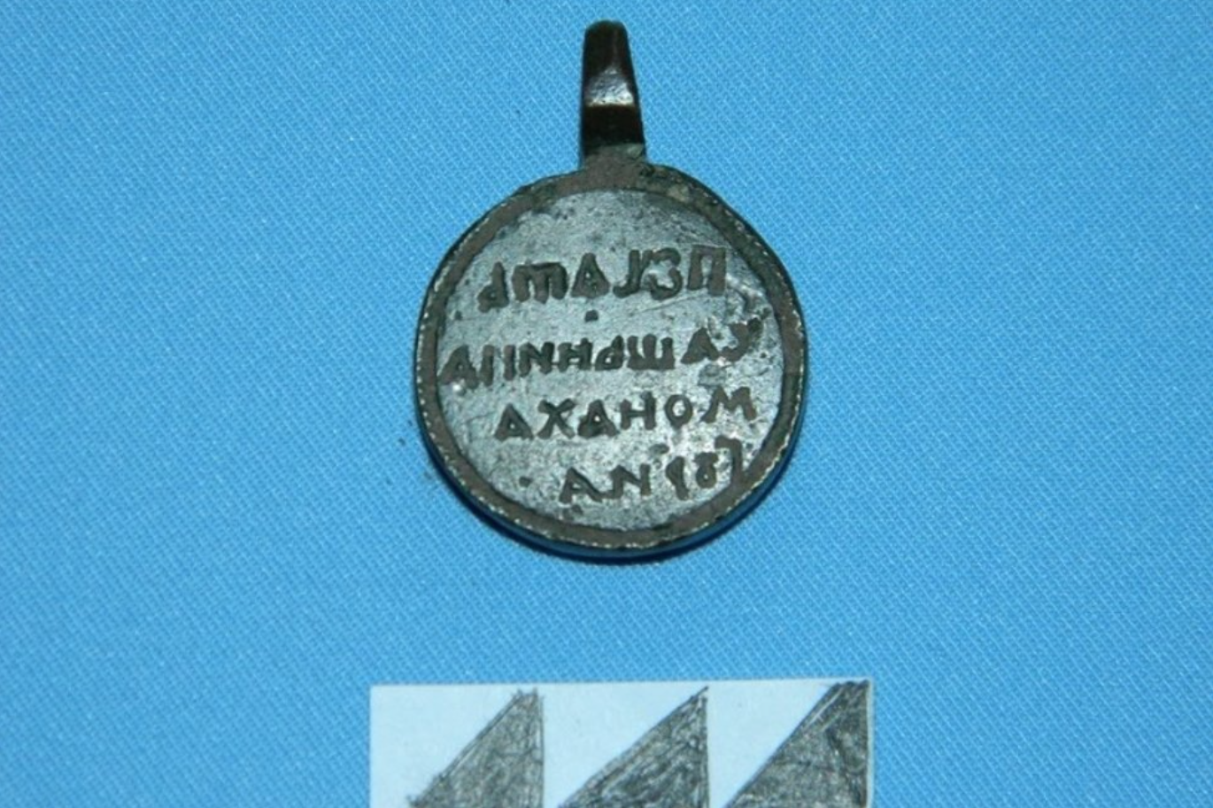 "Для археологов даже самый мелкий фрагмент керамики вызывает определенный интерес. Но наибольшее внимание в этом году привлекли 2 находки. Это золотая подвеска с изображением распятия, предположительно середины XIX века весом 11,8 грамма. Другая вещь - подвеска-печать, на лицевой стороне которой изображен сюжет из Книги притчей Соломоновых "О двух матерях". На обратной стороне изделия есть текст, который гласит, что это печать чашника - монаха, заведующего погребом, напитками", - рассказал Альберт Нигамаев.